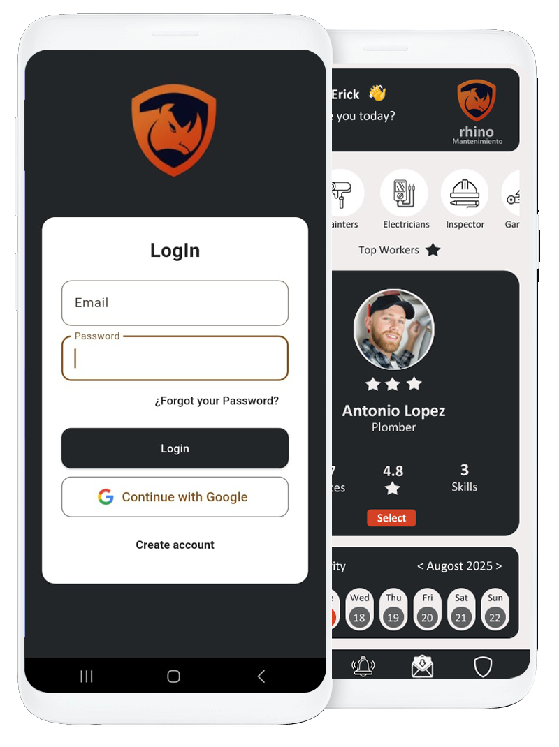 "Born from the desire to quickly create jobs, rhino connects people who need fix something with those who can provide professional repair and maintenance services."